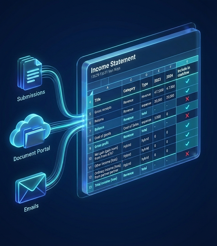 Extract key financial data points with contextual relationships to power your AI lender matching tools.